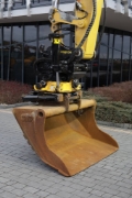 ● Engcon EC219 head on a double hydraulic quick-coupler with a grab