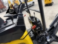 Řízení stroje je intuitivní díky **joystickům, které lze vyklopit nahoru** – čímž zároveň slouží jako **bezpečnostní zámek hydrauliky**.