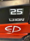New type EP EFL 252X with triplomast 4800mm with freelift and integrated sideshift. 4th function with hoses to forkboard. Led lighting and street lighting and bleuspot. Headroom 2.21 meters. With exchangeable battery and built-in charger on 220 volts. Separate extra battery available with charger so that you can work with 1 battery and 1 battery on the charger.