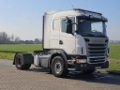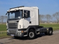 Number of axles: 2, Configuration: 4x2, Own weight: 7347 kg, Gross vehicle weight: 21500 kg, Total fuel capacity: 460 litre, Fifth wheel height: 122 cm, fifth-wheel: Fixed, Diff. locks: 1, Suspension type: air suspension, Cabin type: Sleeping cabin, Cruise control, Tacho, Digital tachograph, Airconditioning, Parking heater, Electric windows, Electric mirrors, Color: white, Heated mirrors, Lighting type: Halogen lamps, Climatecontrol, Flashing lights, Engine capacity: 323 Kw (433 Hp), Fuel type: diesel, Euro: 5, Gearbox kind: Opti-cruise, Gearbox make: Scania, Number of Gears: 12, Clutch Pedal, Add. break system, Retarder make: Scania, Power steering, ABS, ASR, Hydraulic installation, PTO, PTO type: 1, Starter battery, Pump, Seats configuration: 1+1, Seat cover: Chair cover, Chair adjustment: Manually