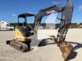 Description: Open canopy, hydraulic thumb, back-fill blade, rubber tracks in good condition, pivot boom, manual coupler. Starts easily and burns clean exhaust. Original paint with some sheet metal damage.