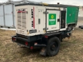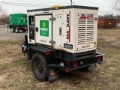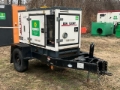 Perkins 404D-22G 4 Cylinder Diesel Engine, 25 kVA/20.2 kW Rated 3 Phase Output, 240 V / 480 V Rated Voltage, 17.5 kVA,/14 kW, Rated Single Phase Output, 120 V / 240 V Rated Voltage, Sound Attenuated, Bottom Mounted Fuel Tank, Lunette Ring Carrier Trailer, Electric Brakes. to see more information.