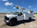 V10 6.8 L Gasoline Engine, 2009 US EPA Label, Automatic Transmission, 6000 lb Front Axle, 12000 lb Rears, 16500 lb GVWR, 225/70R19.5, Spring Suspension, 141 in Wheelbase, PTO, 350 lb Capacity, Center Mounted, One-Person Telescopic Boom, Utility Body, 11 ft x 96 in Bed