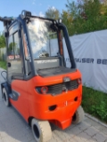 Endkundenbemerkung: Die Angabe der Betriebsstunden kann aufgrund von Zwischenvermietungen vom tatsächlichen Wert abweichen. Aktuelle Betriebsstunden erhalten Sie jederzeit gerne auf Nachfrage. Die Auslieferung des FFZ erfolgt mit gültiger FEM-Prüfung und technischer Durchsicht in unserer Werkstatt., Sonderausstattung: Bleisäure Batterie, Doppelpedal, Automatische Parkbremse, Schmutzfänger hint. mitlenkend, Gabelträger 1150mm, Komfort Kabine, Spritzschutz vorne und hinten, Fahrersitz Kunstleder und schwenkbar, Heizung, Lenksäule höhenverstellbar, Innenspiegel Panorama, Kreuzhebel Betätigung, Multifunktions Display 7 Zoll, Lastgewichtsanzeige, Arbeitsscheinwerfer vorne & hinten, Kontrollzugang ink. Linde Connect System, BlueSpot, Leistungsstufe Efficiency, Steckdose 12V in Kabine, USB Steckdose 5V in Armlehne, Lackierung RAL2002 Blutorange