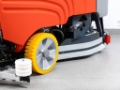 New polyurethane squeegee rubbers resistant to oil, grease, and petroleum products. New rubber guards around the brush head prevent water from splashing outside the machine's outline.