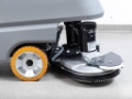 New polyurethane squeegee rubbers resistant to oil, grease, and petroleum products. A built-in battery charger and wheel drive simplify daily operation.