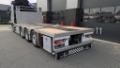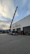 Horizontaal hydraulisch uitschuifbare steunpootbuizen, bediening via radio. -Leiding- en slanggeleiding intern: steunpootbalken, kolom en hoofdgiek ("clean tap").