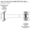 VOLVO FH540 4x2 GLOBETROTTER – CURTAINSIDER RIGID – TAIL LIFT – EURO 6 – 2015 General information • Make / Model: Volvo FH540 • Configuration: 4x2 rigid truck with curtainsider body • Cabin: Globetrotter sleeper cab • First registration: 21-09-2015 • Mileage: 925,000 km • Colour: Original blue • Chassis number (VIN): YV2RT60AXFB736621 Engine & Transmission • Engine: Volvo 540 hp – Euro 6 • Gearbox: Volvo I-Shift automatic transmission – 12 speeds • Engine brake: VEB+ • Volvo Dynamic Steering Chassis • Wheelbase: 560 cm • Dura-Bright aluminium wheels • Trailer coupling with drawbar hitch Cabin & Comfort • Globetrotter sleeper cab • Air conditioning • Refrigerator under the bed • I-Park Cool electronic parking cooler • Light bar on roof • Roof spoiler Body • Curtainsider body with rear doors 738x248x263 • Palfinger tuck-away tail lift – 2,000 kg Cool unit brand: Thermo King = More information = General information Bodywork: Tarpaulin Technical information Number of cylinders: 6 Empty weight: 11.245 kg Drivetrain Fuel tank: 810 litres Axle configuration Tyre size: 315/80R22,5 Make axles: VOLVO Suspension: air suspension Front axle: Steering; Tyre profile left: 30%; Tyre profile right: 30% Rear axle: Double wheels; Tyre profile left inner: 30%; Tyre profile left outer: 30%; Tyre profile right outer: 30%; Tyre profile right outer: 30%; Reduction: single reduction Functional Tail lift: PALFINGER REMOTE CONTROL, slider lift, 2000 kg Sliding roof: Yes Cooling engine: diesel and electric Maintenance APK (MOT): tested until 09/2026 Condition Technical condition: very good Visual appearance: very good Damages: none Other information Cool unit make: Thermo King Cargo space outer length: 770 cm Cargo space outer width: 246 cm Cargo space outer height: 235 cm = Dealer information = Please note: vehicles are located on site in Vuren, NLD - always contact us in advance (by telephone) for a viewing! Although we have taken the utmost care to ensure the completeness and correctness of the information on the website, we cannot guarantee any errors or omissions. We accept no liability for this. All information, products and services are offered in the state in which they actually are and without any (implicit) warranty or guarantee with regard to their soundness, suitability for a particular purpose or otherwise. The information on this website (including this legal information) is regularly supplemented and updated, any changes can always be made with immediate effect and without any notice.